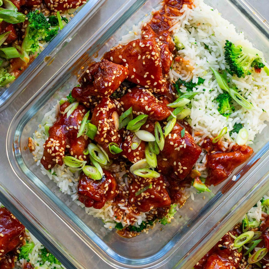 kippendijen, knoflookpoeder, chili poeder, tarwebloem, knoflook, Gochujang, sojasaus, honing, limoen, broccoli, basmati rijst, bosui, sesamzaad, zonnebloemolie.